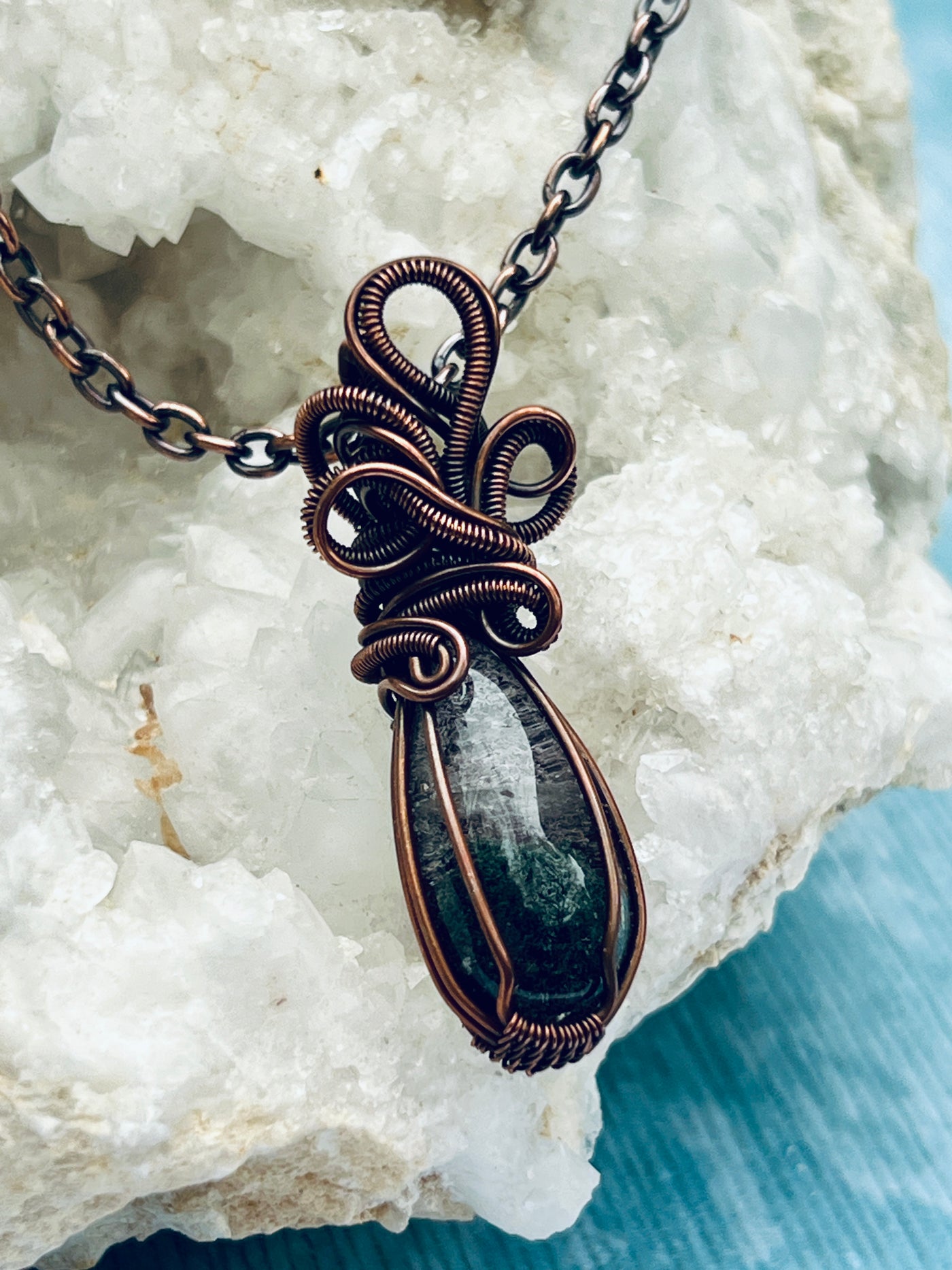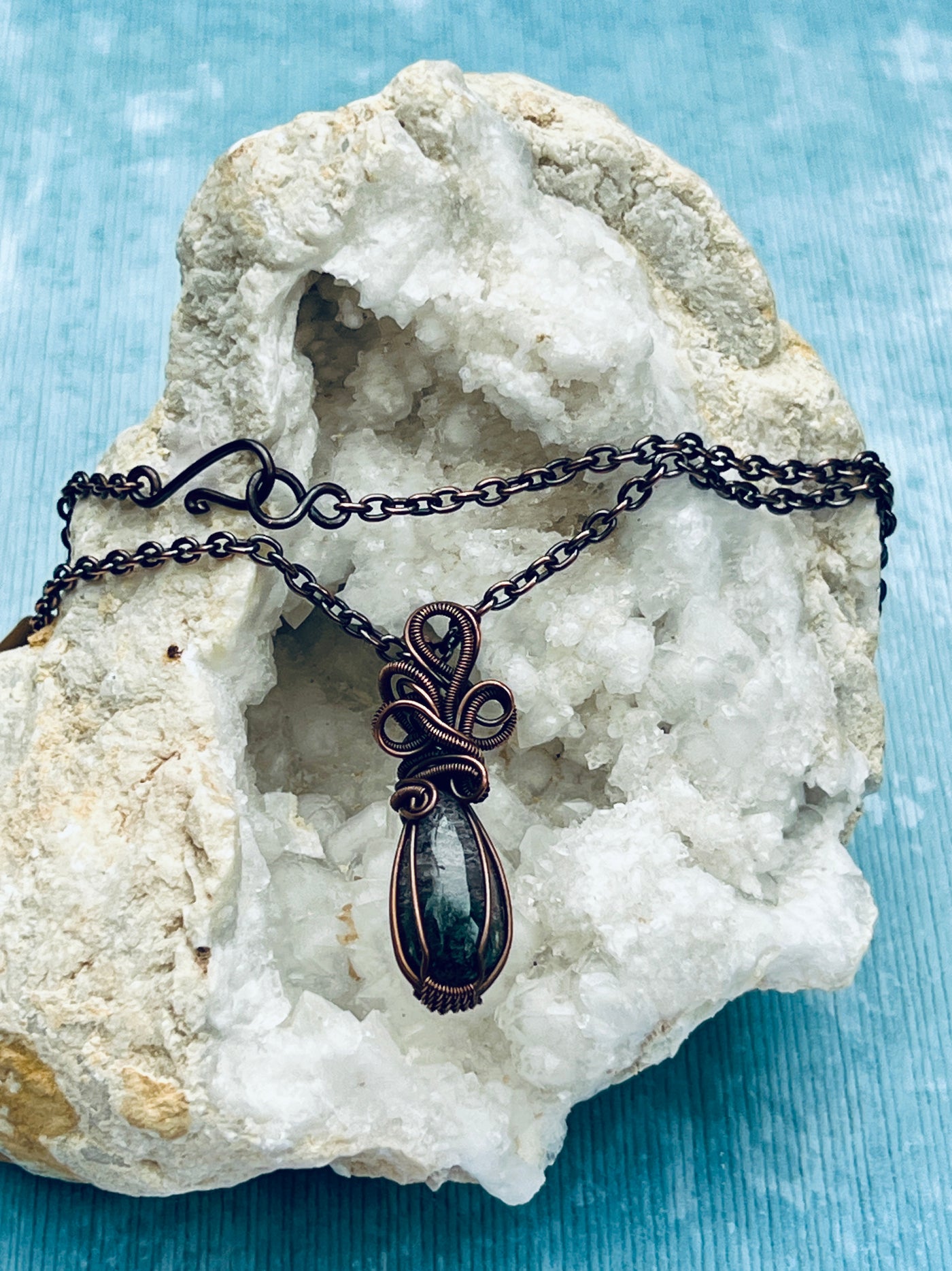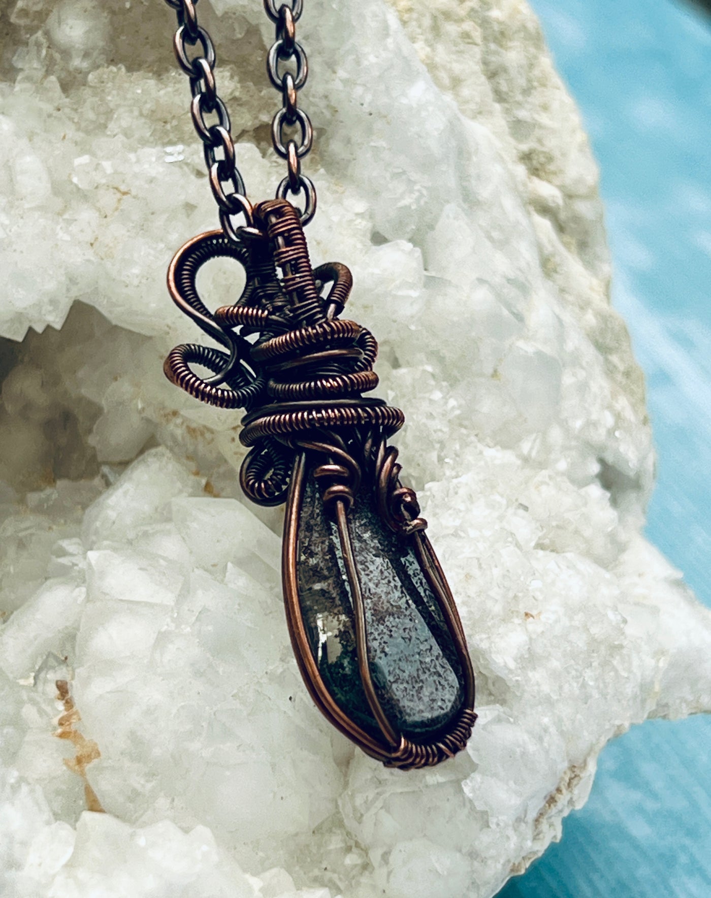 Experience the captivating allure of lodalite in this expertly handcrafted pendant, where artisan copper wrapping showcases the stone's mesmerizing inclusions and natural formations. Each piece is individually designed to highlight lodalite's distinctive character, while the copper framework develops a rich patina that deepens with time. This isn't merely an accessory—it's a personal keepsake that grows more beautiful and meaningful as it ages alongside you. Invest in authentic craftsmanship that honors nature's geological artistry, creating a pendant that tells your unique story and reflects your appreciation for genuine, handmade treasures.