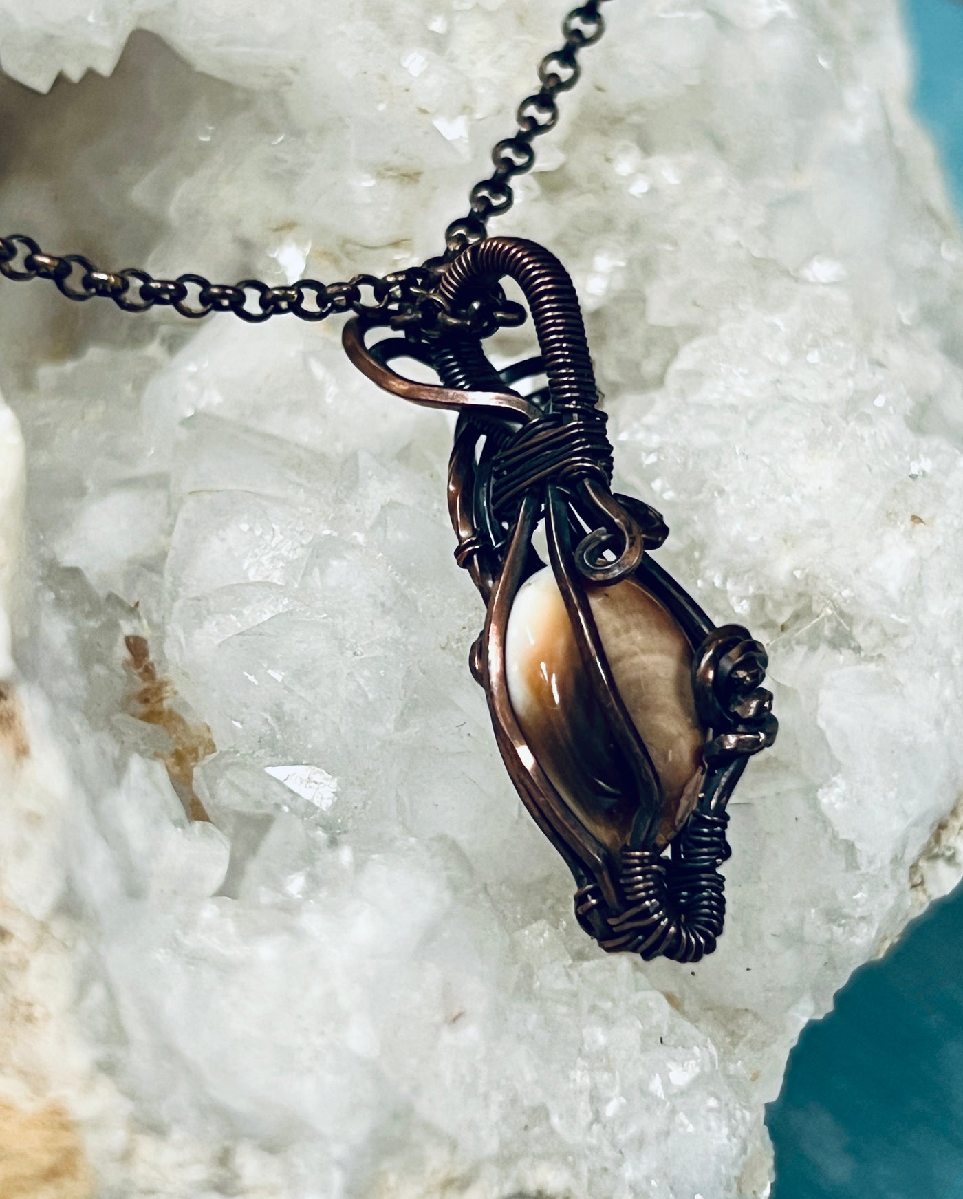{"id":8819991970020,"title":"Copper Wrapped Shiva Shell Pendent","handle":"copper-wrapped-shiva-shell-pendent","description":"\u003cp\u003eCelebrate the ocean's artistry with this striking copper-wrapped Shiva shell pendant. Nature's sculptural masterpiece—a shell with distinctive spiral chambers—is elevated by skilled metalwork that honors its organic geometry. Each handcrafted piece features copper wire carefully woven to frame and protect the shell while showcasing its natural texture and form. The design captures light in unexpected ways, revealing the shell's subtle variations with every movement. Ideal for those drawn to meaningful jewelry rooted in natural beauty and spiritual symbolism, this pendant serves as a wearable reminder of the sea's creative power—a distinctive accessory that bridges artisan craftsmanship with the timeless appeal of coastal treasures.\u003c\/p\u003e","published_at":"2025-11-13T10:59:35-05:00","created_at":"2025-11-13T10:57:16-05:00","vendor":"Natural Gifts Jewelry","type":"Jewelry","tags":["jewelry","Maker_Marie Zaccagnini","Type_Accessories","Type_Necklaces"],"price":7000,"price_min":7000,"price_max":7000,"available":true,"price_varies":false,"compare_at_price":3500,"compare_at_price_min":3500,"compare_at_price_max":3500,"compare_at_price_varies":false,"variants":[{"id":47023600468196,"title":"Default Title","option1":"Default Title","option2":null,"option3":null,"sku":null,"requires_shipping":true,"taxable":true,"featured_image":null,"available":true,"name":"Copper Wrapped Shiva Shell Pendent","public_title":null,"options":["Default Title"],"price":7000,"weight":0,"compare_at_price":3500,"inventory_management":"shopify","barcode":null,"requires_selling_plan":false,"selling_plan_allocations":[]}],"images":["\/\/marthasvineyardmade.com\/cdn\/shop\/files\/Natural_Gifts_shiva_shell_copper_wire.jpg?v=1763049578","\/\/marthasvineyardmade.com\/cdn\/shop\/files\/Natural_Gifts_shiva_shell_copper_wire_clasp.jpg?v=1763049578","\/\/marthasvineyardmade.com\/cdn\/shop\/files\/Natural_Gifts_shiva_shell_copper_wire_back_Left.jpg?v=1762993882","\/\/marthasvineyardmade.com\/cdn\/shop\/files\/Natural_Gifts_shiva_shell_copper_wire_back_right.jpg?v=1762993941"],"featured_image":"\/\/marthasvineyardmade.com\/cdn\/shop\/files\/Natural_Gifts_shiva_shell_copper_wire.jpg?v=1763049578","options":["Title"],"media":[{"alt":null,"id":67318079619300,"position":1,"preview_image":{"aspect_ratio":0.749,"height":3862,"width":2894,"src":"\/\/marthasvineyardmade.com\/cdn\/shop\/files\/Natural_Gifts_shiva_shell_copper_wire.jpg?v=1763049578"},"aspect_ratio":0.749,"height":3862,"media_type":"image","src":"\/\/marthasvineyardmade.com\/cdn\/shop\/files\/Natural_Gifts_shiva_shell_copper_wire.jpg?v=1763049578","width":2894},{"alt":null,"id":67318081323236,"position":2,"preview_image":{"aspect_ratio":0.75,"height":4032,"width":3024,"src":"\/\/marthasvineyardmade.com\/cdn\/shop\/files\/Natural_Gifts_shiva_shell_copper_wire_clasp.jpg?v=1763049578"},"aspect_ratio":0.75,"height":4032,"media_type":"image","src":"\/\/marthasvineyardmade.com\/cdn\/shop\/files\/Natural_Gifts_shiva_shell_copper_wire_clasp.jpg?v=1763049578","width":3024},{"alt":null,"id":67318079258852,"position":3,"preview_image":{"aspect_ratio":0.803,"height":3765,"width":3024,"src":"\/\/marthasvineyardmade.com\/cdn\/shop\/files\/Natural_Gifts_shiva_shell_copper_wire_back_Left.jpg?v=1762993882"},"aspect_ratio":0.803,"height":3765,"media_type":"image","src":"\/\/marthasvineyardmade.com\/cdn\/shop\/files\/Natural_Gifts_shiva_shell_copper_wire_back_Left.jpg?v=1762993882","width":3024},{"alt":null,"id":67318056780004,"position":4,"preview_image":{"aspect_ratio":0.75,"height":4032,"width":3024,"src":"\/\/marthasvineyardmade.com\/cdn\/shop\/files\/Natural_Gifts_shiva_shell_copper_wire_back_right.jpg?v=1762993941"},"aspect_ratio":0.75,"height":4032,"media_type":"image","src":"\/\/marthasvineyardmade.com\/cdn\/shop\/files\/Natural_Gifts_shiva_shell_copper_wire_back_right.jpg?v=1762993941","width":3024}],"requires_selling_plan":false,"selling_plan_groups":[],"content":"\u003cp\u003eCelebrate the ocean's artistry with this striking copper-wrapped Shiva shell pendant. Nature's sculptural masterpiece—a shell with distinctive spiral chambers—is elevated by skilled metalwork that honors its organic geometry. Each handcrafted piece features copper wire carefully woven to frame and protect the shell while showcasing its natural texture and form. The design captures light in unexpected ways, revealing the shell's subtle variations with every movement. Ideal for those drawn to meaningful jewelry rooted in natural beauty and spiritual symbolism, this pendant serves as a wearable reminder of the sea's creative power—a distinctive accessory that bridges artisan craftsmanship with the timeless appeal of coastal treasures.\u003c\/p\u003e"}