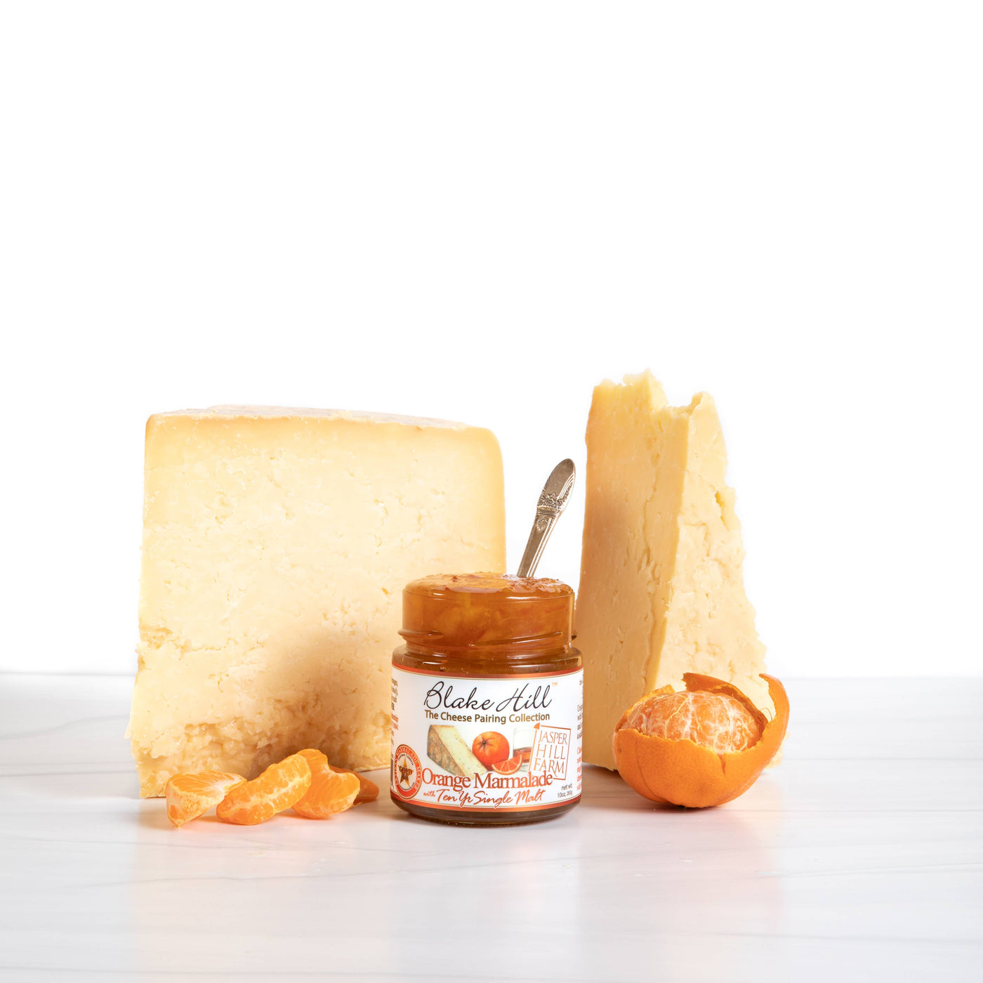 Created with award-winning cheesemakers Jasper Hill Farm, this marmalade pairs the taste of fresh, sweet oranges with the bold, peaty flavor of a world-renowned ten year single malt whiskey. This is a rich, sophisticated marmalade that pairs well with hard cheese varieties, like Cabot Clothbound with its caramel nuttiness. A perfect gift for the whisky connoisseur! Check out our Cooking with Jam series for recipes like Orange Whisky & Cabot Clothbound Wontons that showcase how to make a simple dish special with a jar of Blake Hill jam! THE WORLD MARMALADE AWARDS GOLD MEDAL Non-GMO | Gluten Free | Kosher | Vegan | Dairy Free | Nut Free | Less Sugar, More Fruit