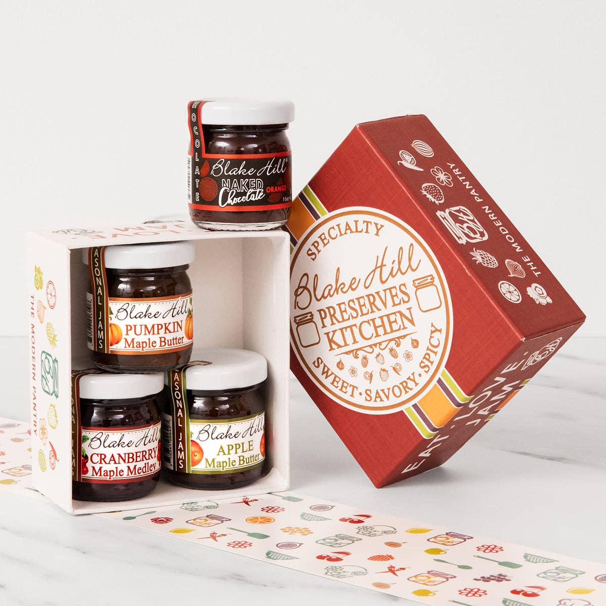 {"id":8740338172132,"title":"Blake Hill Preserves - Seasonal Sampler","handle":"blake-hill-preserves-seasonal-sampler","description":"Our Mini Samplers are a great way to sample our range of preserves and makes the ultimate hostess gift! \n\nThis gorgeous seasonal gift box includes a selection of our Seasonal Jams and a Naked Chocolate mini to provide the perfect Blake Hill sampler gift for family and friends, year round but especially for the holidays!\n\nThis sampler features 4 minis (1.5oz jars) packaged in a custom gift box with a card that we would be delighted to write a custom message on for you! \n","published_at":"2025-09-27T11:57:03-04:00","created_at":"2025-09-22T12:04:50-04:00","vendor":"Blake Hill Preserves","type":"Pantry","tags":["Gift","Gift Basket","gift box","Gift Ideas_For Her","Gift Ideas_For Him","Gift Ideas_For the Host","Maker_Blake Hill","New England Made","pantry","Type_Kitchen \u0026 Dining","Vermont"],"price":1699,"price_min":1699,"price_max":1699,"available":true,"price_varies":false,"compare_at_price":null,"compare_at_price_min":0,"compare_at_price_max":0,"compare_at_price_varies":false,"variants":[{"id":46762614882532,"title":"Default Title","option1":"Default Title","option2":null,"option3":null,"sku":"4J-MINI LIMITED","requires_shipping":true,"taxable":true,"featured_image":null,"available":true,"name":"Blake Hill Preserves - Seasonal Sampler","public_title":null,"options":["Default Title"],"price":1699,"weight":544,"compare_at_price":null,"inventory_management":"shopify","barcode":"850033903768","requires_selling_plan":false,"selling_plan_allocations":[]}],"images":["\/\/marthasvineyardmade.com\/cdn\/shop\/files\/a44ed9b28a594abe08f2acb400fec9d113a94ac062ed3647bb60283f22376dcb.jpg?v=1758557094","\/\/marthasvineyardmade.com\/cdn\/shop\/files\/e3175bcaf85aef81d060fddb4a299c897088907ee67274c1d2b421baaabac66a.jpg?v=1758557095","\/\/marthasvineyardmade.com\/cdn\/shop\/files\/1242143ddd24eccc2c65e16471f2c0b521f2f9a6f7e50ca0568b89aabf82dc86.jpg?v=1758557094"],"featured_image":"\/\/marthasvineyardmade.com\/cdn\/shop\/files\/a44ed9b28a594abe08f2acb400fec9d113a94ac062ed3647bb60283f22376dcb.jpg?v=1758557094","options":["Title"],"media":[{"alt":null,"id":66704501080292,"position":1,"preview_image":{"aspect_ratio":1.0,"height":3600,"width":3600,"src":"\/\/marthasvineyardmade.com\/cdn\/shop\/files\/a44ed9b28a594abe08f2acb400fec9d113a94ac062ed3647bb60283f22376dcb.jpg?v=1758557094"},"aspect_ratio":1.0,"height":3600,"media_type":"image","src":"\/\/marthasvineyardmade.com\/cdn\/shop\/files\/a44ed9b28a594abe08f2acb400fec9d113a94ac062ed3647bb60283f22376dcb.jpg?v=1758557094","width":3600},{"alt":null,"id":66704501113060,"position":2,"preview_image":{"aspect_ratio":1.0,"height":3600,"width":3600,"src":"\/\/marthasvineyardmade.com\/cdn\/shop\/files\/e3175bcaf85aef81d060fddb4a299c897088907ee67274c1d2b421baaabac66a.jpg?v=1758557095"},"aspect_ratio":1.0,"height":3600,"media_type":"image","src":"\/\/marthasvineyardmade.com\/cdn\/shop\/files\/e3175bcaf85aef81d060fddb4a299c897088907ee67274c1d2b421baaabac66a.jpg?v=1758557095","width":3600},{"alt":null,"id":66704501145828,"position":3,"preview_image":{"aspect_ratio":0.999,"height":1201,"width":1200,"src":"\/\/marthasvineyardmade.com\/cdn\/shop\/files\/1242143ddd24eccc2c65e16471f2c0b521f2f9a6f7e50ca0568b89aabf82dc86.jpg?v=1758557094"},"aspect_ratio":0.999,"height":1201,"media_type":"image","src":"\/\/marthasvineyardmade.com\/cdn\/shop\/files\/1242143ddd24eccc2c65e16471f2c0b521f2f9a6f7e50ca0568b89aabf82dc86.jpg?v=1758557094","width":1200}],"requires_selling_plan":false,"selling_plan_groups":[],"content":"Our Mini Samplers are a great way to sample our range of preserves and makes the ultimate hostess gift! \n\nThis gorgeous seasonal gift box includes a selection of our Seasonal Jams and a Naked Chocolate mini to provide the perfect Blake Hill sampler gift for family and friends, year round but especially for the holidays!\n\nThis sampler features 4 minis (1.5oz jars) packaged in a custom gift box with a card that we would be delighted to write a custom message on for you! \n"}